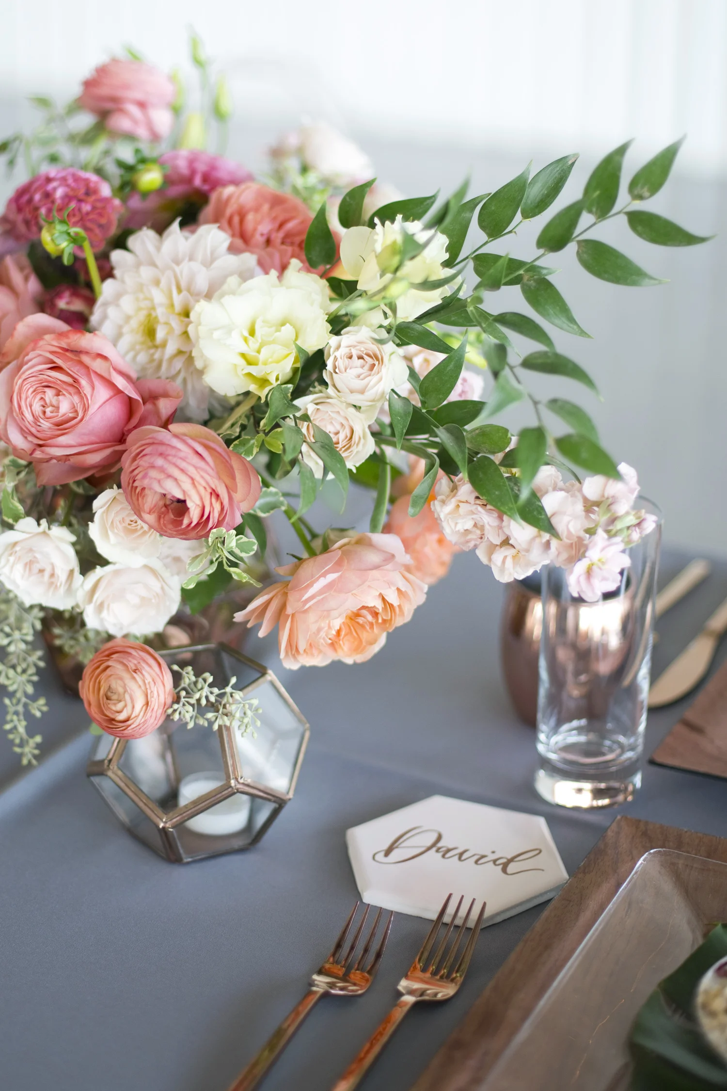 Different shades of pinks and coral mixed with brass cutlery and Moscow Mule mugs, Ghost chairs, a Made With Love Bridal gown straight of out of every little girl’s dreams and of course we can’t forget the helicopter!- made this styled shoot a dreamy, beautifully modern and romantic affair!